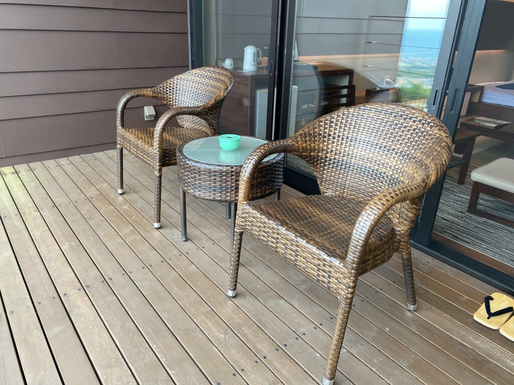 坐在木质的露台上眺望着远处的别府美景,那份休闲惬意,真的是再好不过了。
